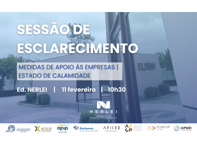 A NERLEI CCI, em conjunto com a ARICOP, ACILIS, APIP, CEFAMOL, APICER, AECPombal e Startup Leiria, e em articulação com a Estrutura de Missão para a Reconstrução da Região Centro, divulga uma sessão de apresentação e esclarecimento das medidas de apoio às empresas afetadas pela tempestade kristin, no passado dia 28 de janeiro.